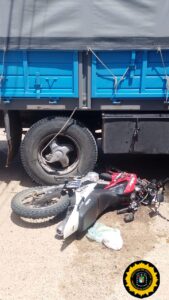 El hecho ocurrió alrededor de las 11:15 horas, cuando un camión que circulaba por calle Sarmiento colisionó con una motocicleta que se desplazaba por la zona. Como consecuencia del impacto, la conductora del rodado menor (20 años) resultó lesionada y fue trasladada de manera inmediata por una ambulancia de Emergencias al Hospital Santa Rosa.