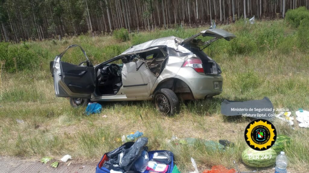 Por causas que se tratan de establecer, un vehículo marca Chevrolet Agile, que circulaba en sentido Norte a Sur, conducido por un hombre de 38 años de edad, quien se trasladaba acompañado por una mujer mayor, una menor de 12 años y un hombre de 32 años, habría perdido el control de su marcha debido a la rotura del neumático trasero derecho, realizando varios vuelcos y finalizando su recorrido sobre la banquina Este del carril contrario.
