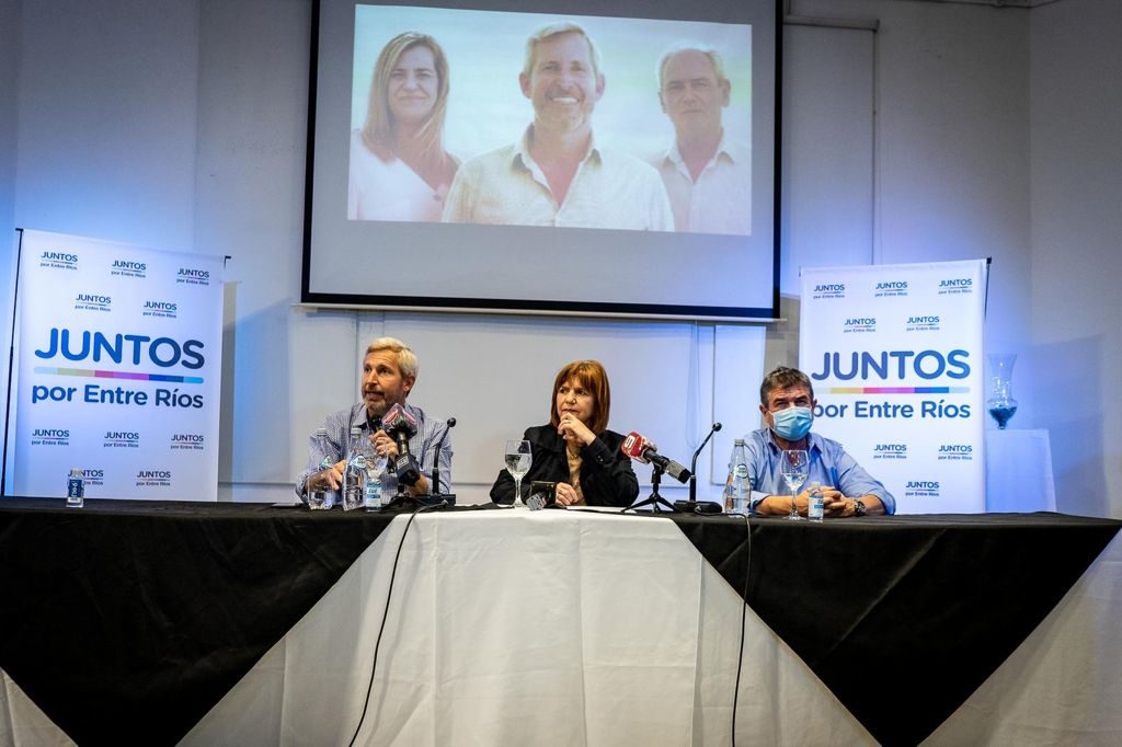 La presidenta del PRO Nacional, Patricia Bullrich, llegó este martes a Paraná para respaldar la “Lista Juntos 502 A” en las elecciones PASO del domingo. “Frigerio es alguien con el que compartí cuatro años de trabajo y encabeza una lista que también integran radicales muy reconocidos y con trayectoria, como Atilio Benedetti y Marcela Antola”, introdujo la ex ministra de Seguridad, quien brindó una conferencia de prensa con el precandidato a diputado nacional, Rogelio Frigerio, y el ex Jefe de la Policía Federal Argentina, el chajariense Néstor Rocanglia.