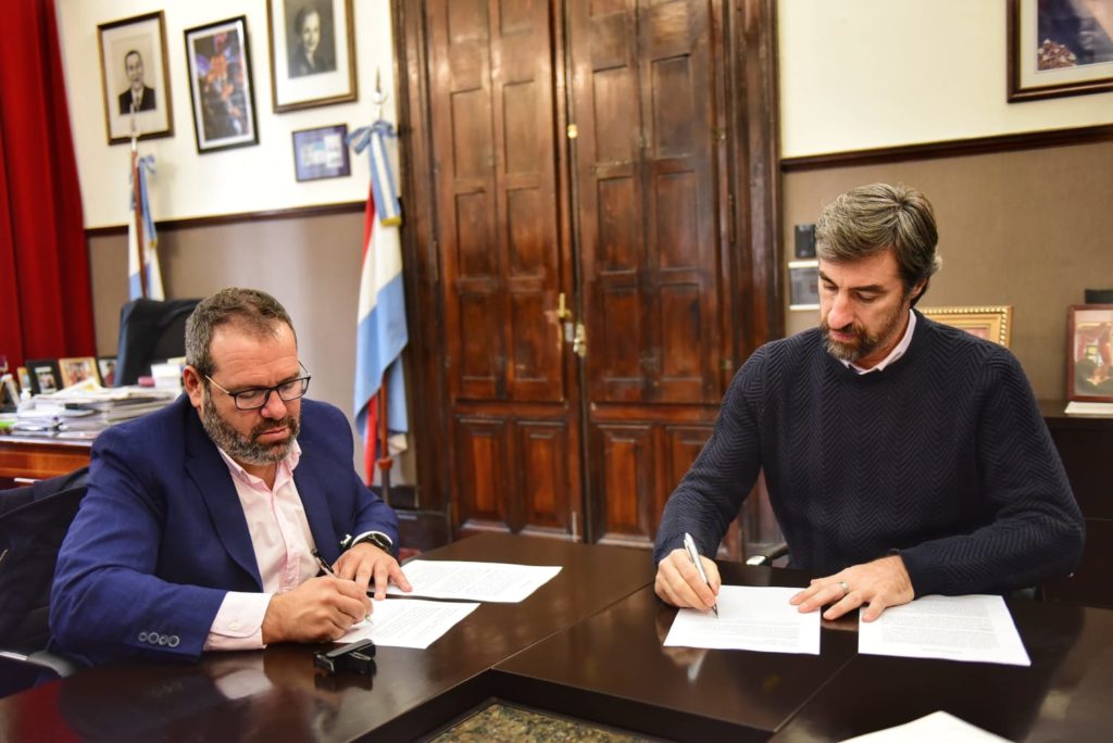 El presidente de la Cámara de Diputados, Angel Giano, y el presidente de la Tarjeta Social Sidecreer, Germán Mizawak, firmaron el comodato de los cuadros del artista plástico Néstor Medrano sobre la gesta Artiguista, que serán expuestos en el marco del “Ciclo Alas”. Además, acordaron suscribir un convenio entre las instituciones para impulsar acciones que beneficien a empleadas y empleados a través de la tarjeta del Estado entrerriano.