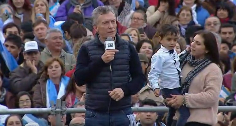 «No tengamos miedo, porque siempre los voy a defender, porque creemos en nuestros valores. Hace cuatro años, en 2015, decidimos jugarnos por el cambio. Tenemos que estar orgullosos de todas las cosas que logramos cambiar en estos años, que son muchas. Pero también tenemos que reconocer que nos faltan muchas más. Soy el primero en saber que no son tiempos fáciles«, destacó el mandatario desde el escenario.