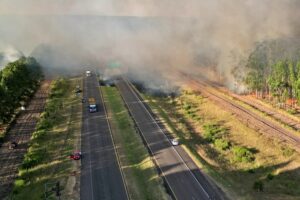 Allí, más allá de esos esfuerzos, el viento que soplaba de Este a Oste fue propicio para que, cerca de las 19, las llamas siguieran hasta cruzar la doble mano de la Autovía José Gervasio Artigas, lo que incluso llevó a que los vehículos que circulaban esa zona debieran aminorar al mínimo sus velocidades, ya que la visibilidad se reducía a pocos metros a causa del humo.