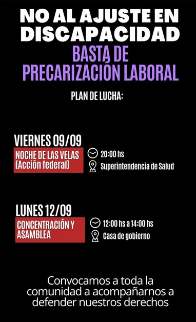 La concentración de hoy se concretará frente a la Superintendencia de Servicios de Salud, ubicada en calle San Martín y Gardel, en el marco de una Acción Federal donde ratifican el «no al ajuste en discapacidad».