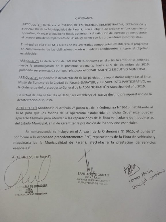 Fue este jueves y regirá hasta el 9 de diciembre. La norma fue acompañada por siete concejales que responden a Sergio Varisco, junto a los ediles del Frente Renovador, Luis Díaz y Silvina Fadel.