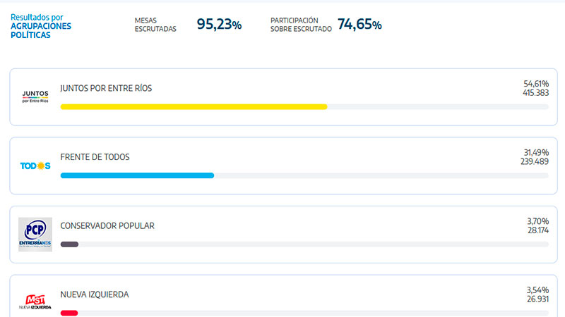 Juntos por Entre Ríos (Frigerio): 54,61% (415.383 votos)