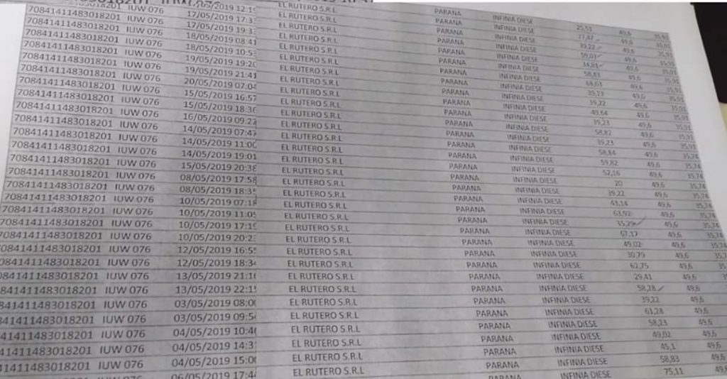 Entre las constancias aparecía que un mismo vehículo vial había cargado combustible a la mañana, a la siesta, a la tarde y a la noche, en cada oportunidad 50 litros, es decir, en el mismo día un integrante de la flota de automotores del organismo había cargado 200 litros en la misma estación de servicio de Avenida de las Américas.