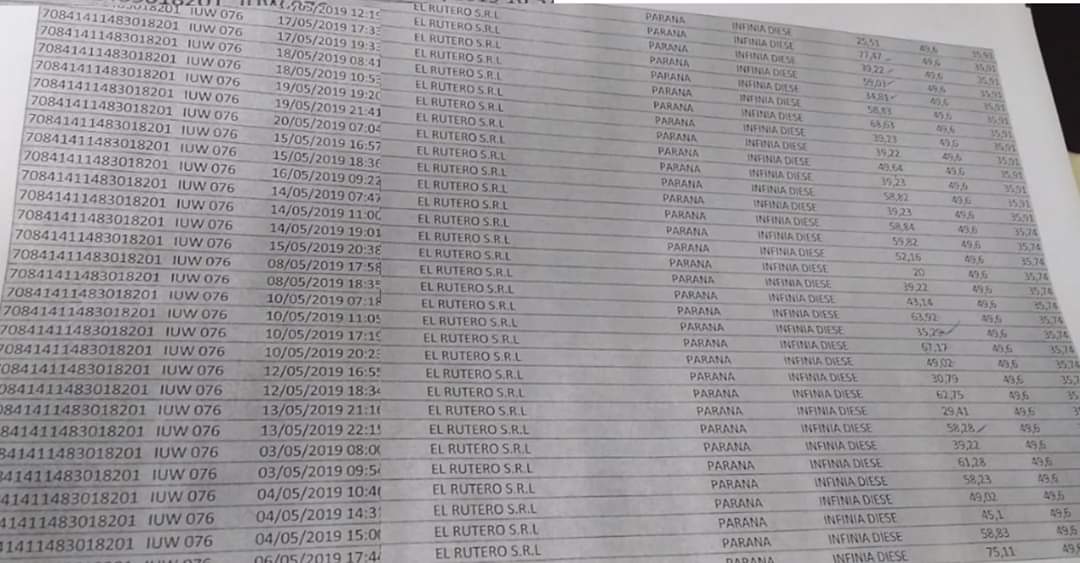 No fue la única irregularidad. Entre los vehículos que habían adquirido combustible con la tarjeta aparecían patentes de vehículos que hace varios meses están fuera de circulación en virtud de sus roturas.