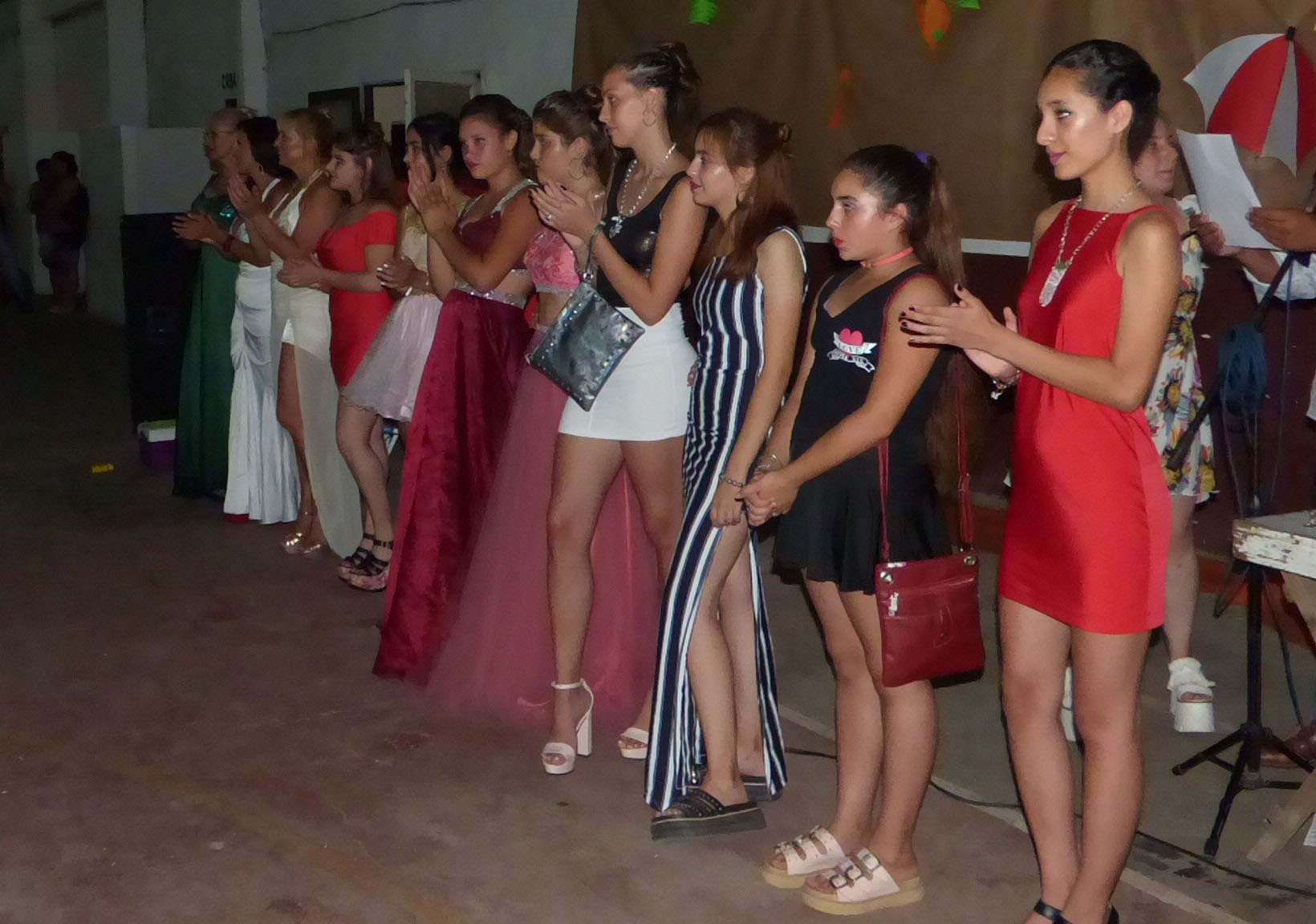 Debido a la amenaza de lluvia, la escenografía se tuvo que trasladar al Salón Multiuso. Luego de este percance dio inicio el desfile de modas organizado por Sararí Belleza, Clavel del Aire, Coqueta, Peluquería Fátima, Yo Te Cielo, Crazy Clothes y La Baulera.