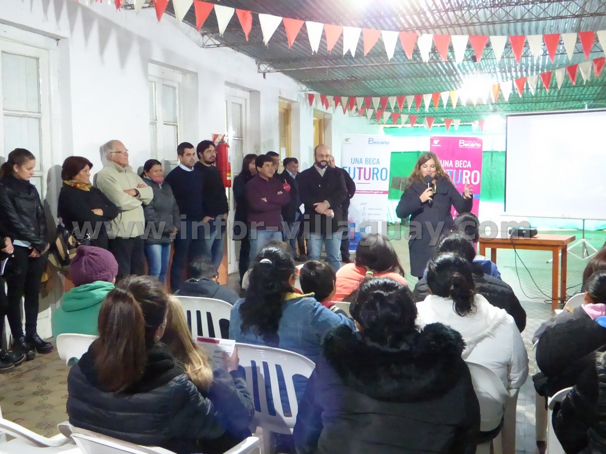 Con la presencia de padres y alumnos que asisten a las clases de apoyo que se dictan el taller municipal a través del programa Educando en Movimiento, la Directora Ejecutiva, Claudia Gieco, explicó la importancia que significa que los estudiantes puedan continuar con este apoyo escolar que brinda el becario en cada punto de la provincia, además dio a conocer las nuevas modalidades de las becas que otorga el instituto, las cuales se encuentran bancarizadas lo cual favorece a un manejo más ágil para los estudiantes, por otro lado felicito al Intendente local por la continuidad y efectividad que se ha logrado en la ejecución del programa que ya se dicta en dos turnos, en este sentido el presidente comunal manifestó su agradecimiento por la presencia de las autoridades lo cual reafirma el compromiso provincial con la educación, como así también el local a través de la beca municipal que ayuda a que los estudiantes puedan desarrollar sus estudios en las diferentes modalidades. El encuentro contó también con la presencia de Pablo Vittor, Director Deptal. de Escuelas quien en referencia a las políticas implementadas señalo » Es necesario destacar el rol del Instituto Becario en el Transporte Escolar Rural. El compromiso y responsabilidad en la administración y control garantiza este servicio en Villaguay y en toda Entre Ríos”.