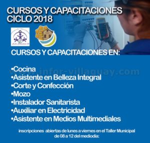 Se informa a los interesados en participar de los cursos que se dictaran en la Casa de la Cultura, los cuales son dependientes del Centro Educativo N°24 de la ciudad de Villaguay, que se encuentran abiertas las inscripciones de lunes a viernes en el Taller Municipal de 08 a 12 del mediodía: