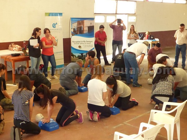Esta mañana desde las 9 de la mañana, comenzó la capacitación teórica practico de R.C.P. D.E.A. organizado por la Secretaria de Deportes de Villa Domínguez en el polideportivo municipal con una duración de dos horas y treinta minutos, la capacitación estuvo dirigida por Dardo Eberlé, técnico instructor en Emergencias Médicas, perteneciente a la Sociedad Cardiológica de Entre Ríos, quien vino en representación de la Secretaria de Deportes provincial.