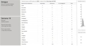 Según registró el portal digutal Uno, el informe actualizado el miércoles 4 de mayo detalla que el departamento Nogoyá reporta 11 casos; Gualeguaychú, 14; Federación, 11; La Paz, 5; Diamante, 8; Concordia, 11; Federal, 2; Victoria, 4; Uruguay, San Salvador, 2; Gualeguay, 8; Colón, 6.